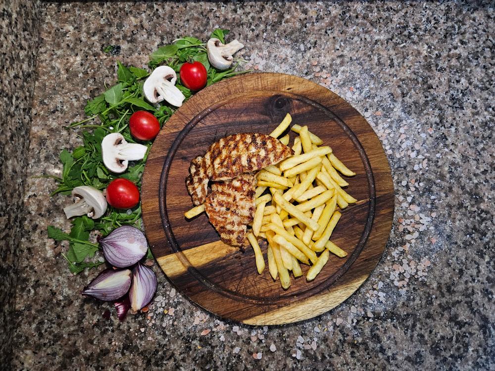 piept pui, cartofi prajiti